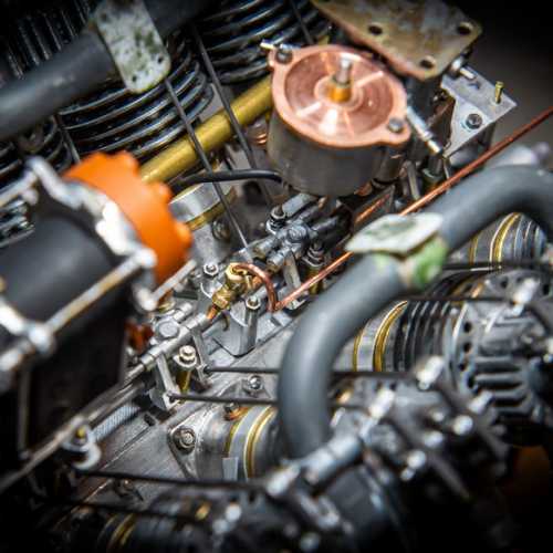 "Bandage" des cylindres . Ne pas oublier que ce moteur est le prototype d'un moteur d'avion. Ce dernier moteur a déçu par l'adoption de petits trous d'extraction d'échappement supplémentaires percés autour de la base des barils, qui aspergeaient les pilotes d'huile. Par la suite ces perçages furent supprimés et le moteur connu un certain succès...Pour des raisons techniques, il était très difficile de boucher les trous et un "bandage" fût la solution retenue.