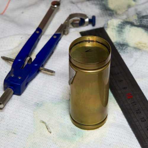 Prototype d'un cylindre. Fabrication des rondelles pour les ailettes de refroidissement dans une tôle grossièrement découpée puis passée au tour. La suite est un empilement des rondelles de différentes sections et épaisseurs. Fabrication de l'embase du cylindre. Perçage des ailettes et mise en place de la partie recevant la bougie .Beaucoup d'heures plus tard, les 8 cylindres sont prêts pour assemblage. 8 cylindres, 7 ailettes de refroidissement / cylindre , 23 trous /ailette = 1288 trous ;o)