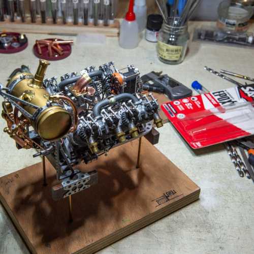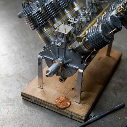 J'avais prévu de réaliser la maquette de cette voiture, mais Richard n'avait plus suffisamment de temps à me consacrer pour que je continue la réalisation de la maquette de façon la plus précise possible. J'ai préféré mettre en valeur ce magnifique moteur avec son embrayage et son réservoir d'huile. C'est une autre façon de présenter et de rendre hommage à sa voiture et à son travail.