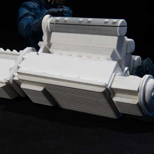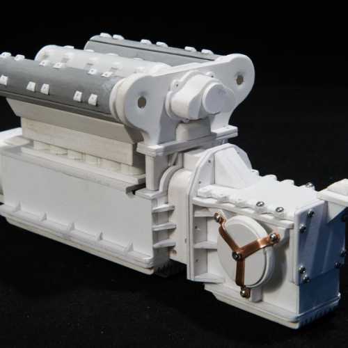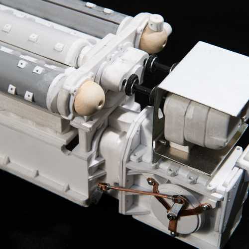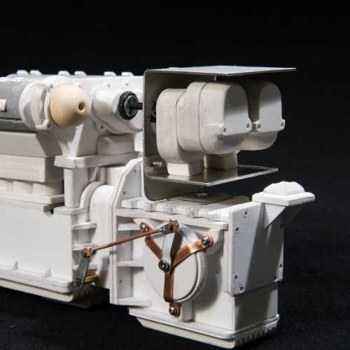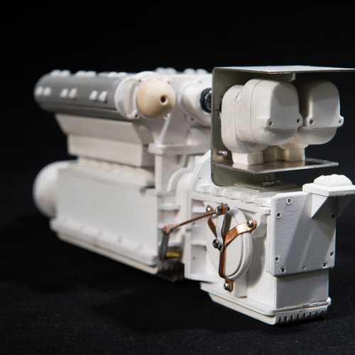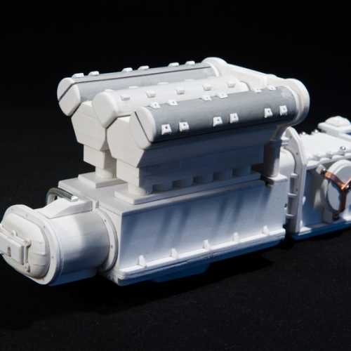 Réalisation du moteur de la Fiat 806.Les différents éléments du moteur sont réalisés en PVC (plaques de différentes épaisseurs), découpés au cutter et collés avec de la colle PVC.