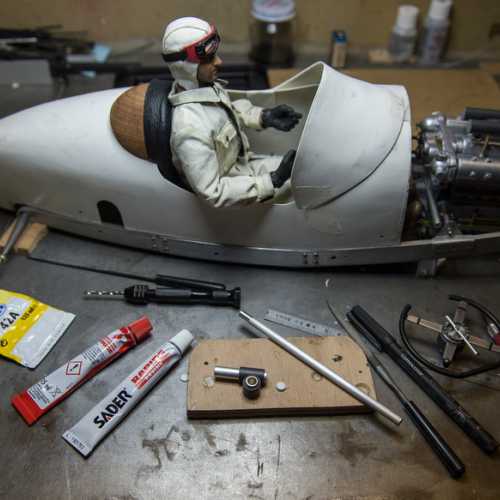 Réalisation de la cagoule du pilote et de ses lunettes.