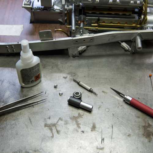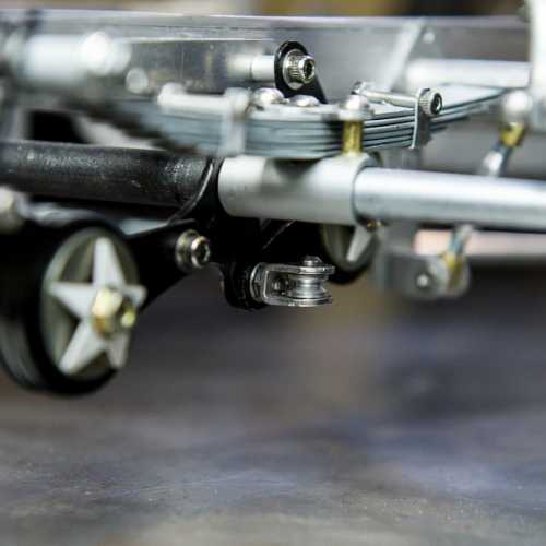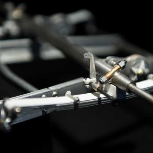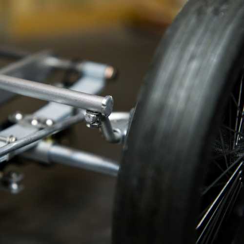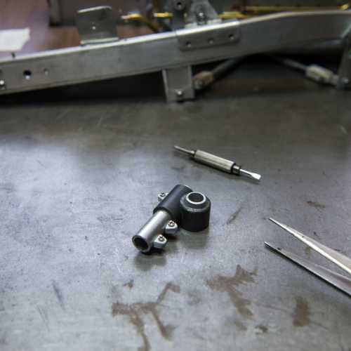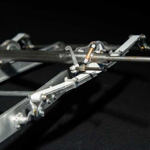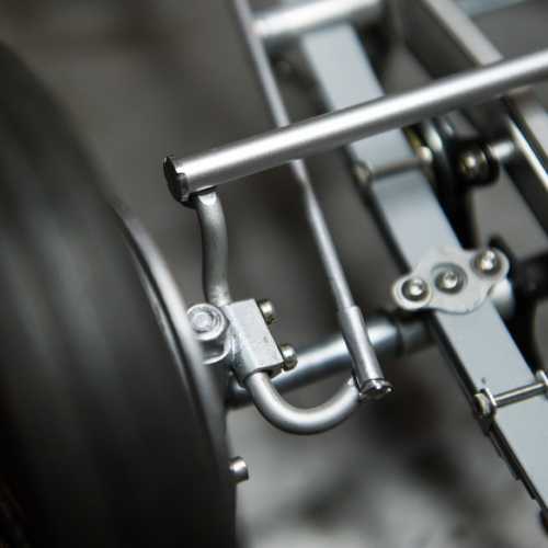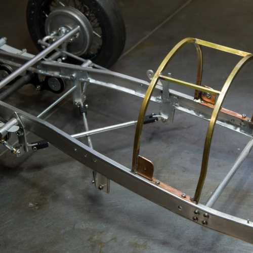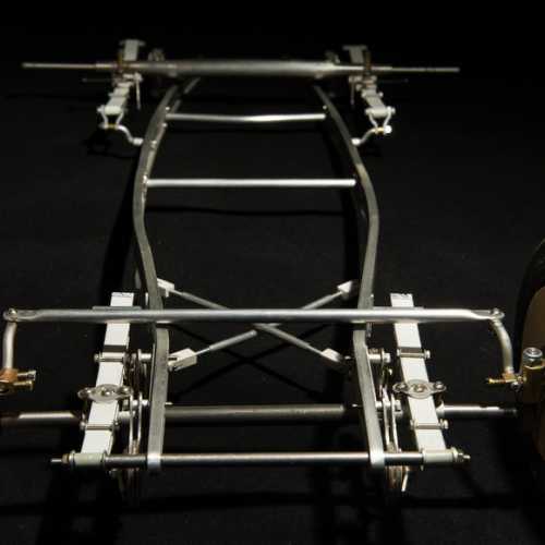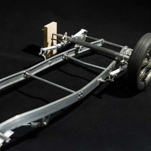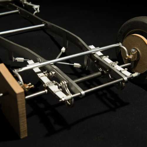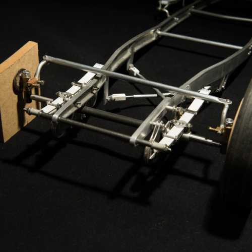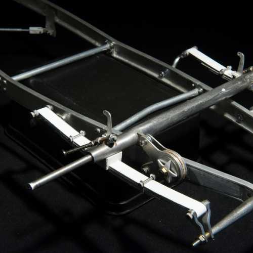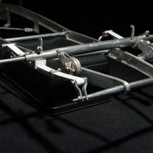 Fabrication des haubans de suspension avant, des 2 bocaux de remplissage moteur, du cardan de la transmission et de la tringlerie du levier de changement de vitesse.