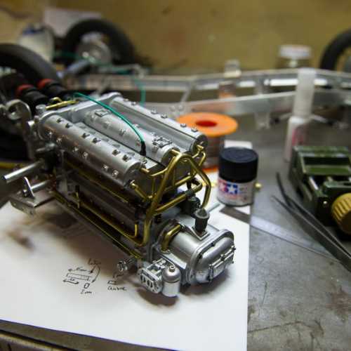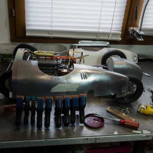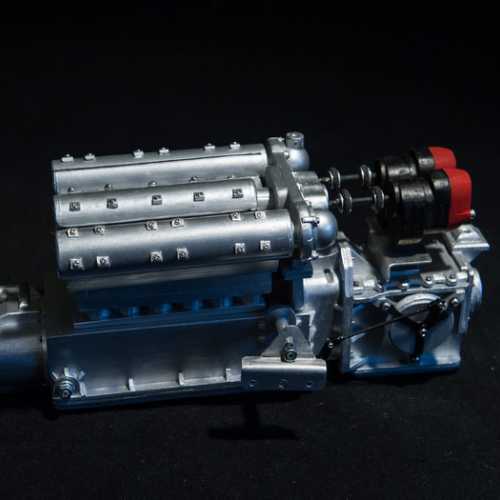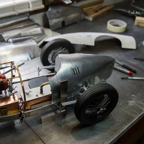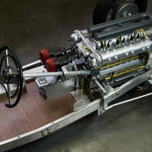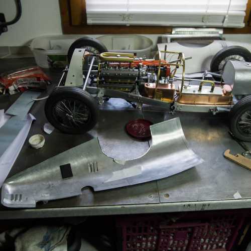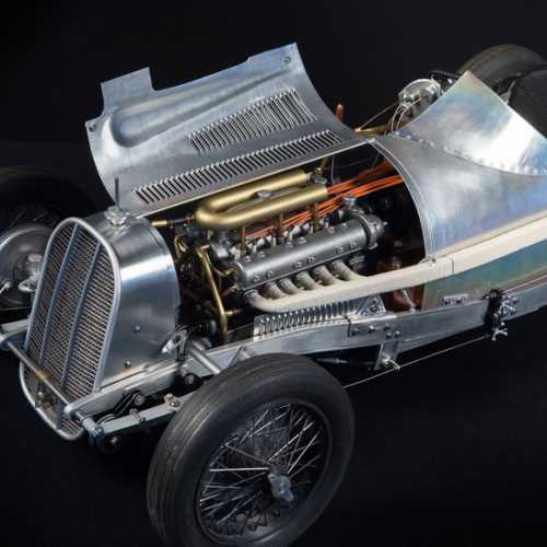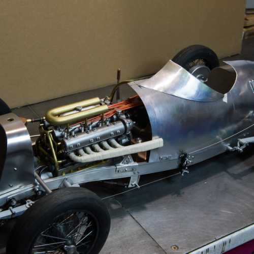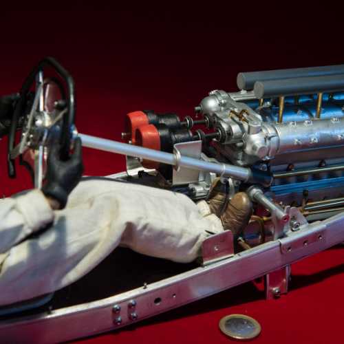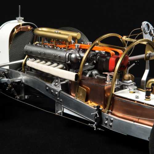Les matériaux utilisés: aluminium, acier (châssis et les trains avant / arrière), fibre de verre, aluminium (carrosserie), carte plastique PVC (moteur), laiton, cuivre...