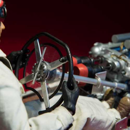 Afin que le pilote puisse passer ses pieds, le moteur est décalé sur la gauche, d'où le bossage particulier de la casquette afin de dévier l'air au niveau du pilote.