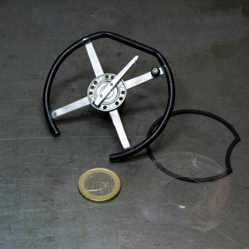 L'écran en plexiglas fixé derrière les branches du volant servait à protéger le visage du pilote des projections d'huile du moteur !!!.