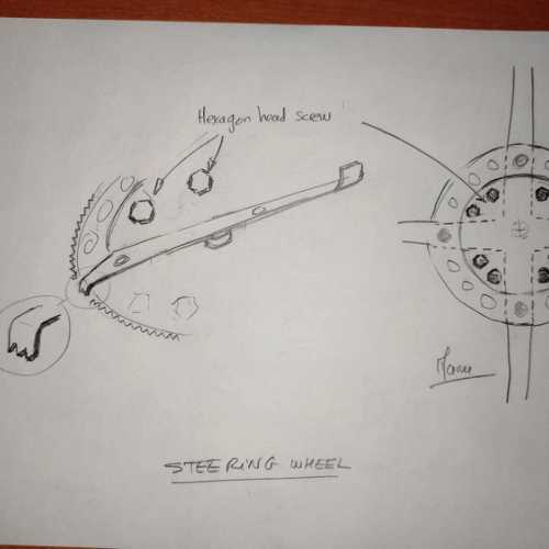 Fabrication et amélioration des écrous de roues (aluminium et bague en laiton), assemblages de divers éléments moteur, finition de la direction (couplage des roues avec la colonne de direction)