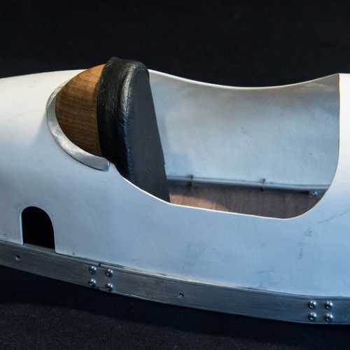 Siège du pilote en cuir ;o) Elément de la carrosserie en fibre de verre.