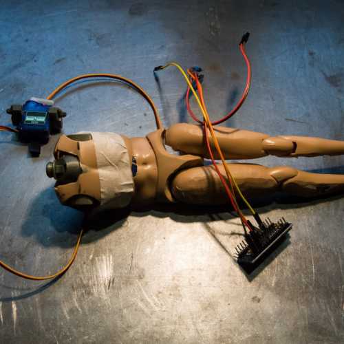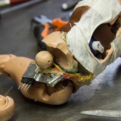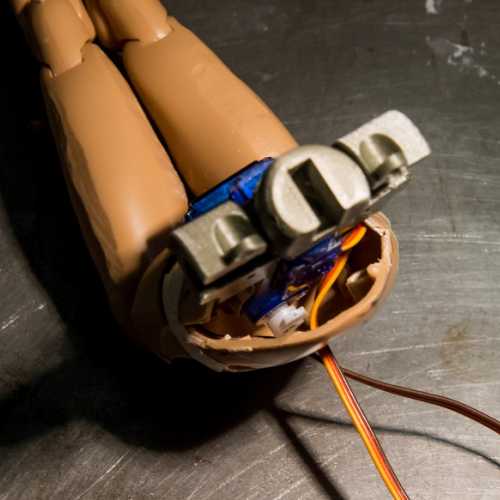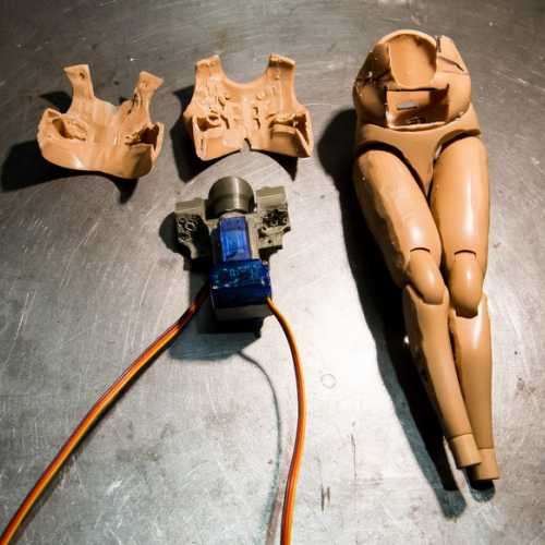 Animation de la figurine. Pas simple d'intégrer 2 servo-moteurs dans le corps (un pour la rotation de la tête et le second pour son inclinaison). Le tout sera piloté par une carte nano arduino (programme à créer)
