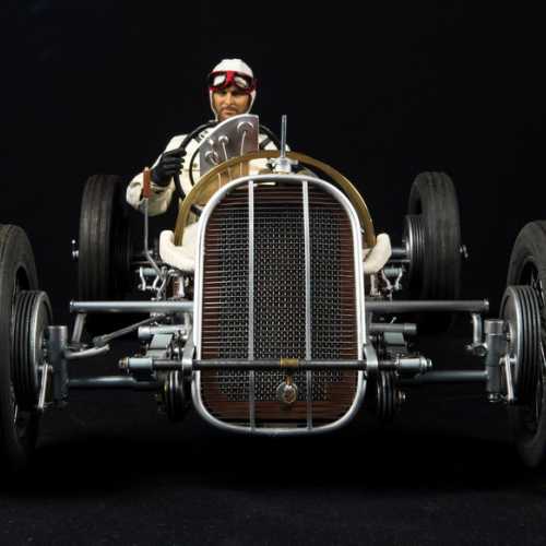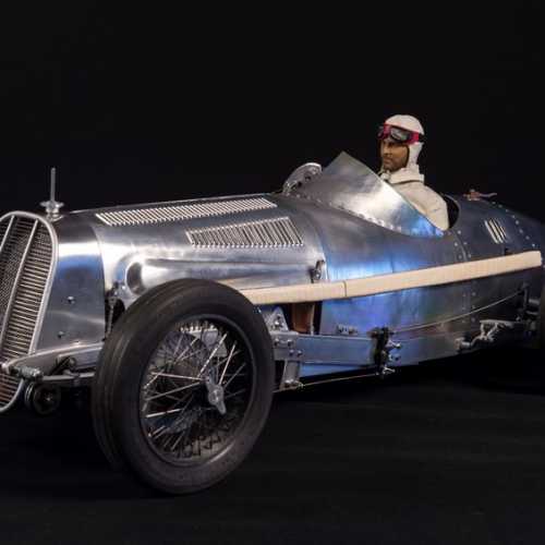 Modification de la calandre avant. Mise en place de la maquette Fiat 806 Grand Prix dans sa vitrine. Le fond de la vitrine est un miroir afin de permettre de mieux voir la carrosserie.