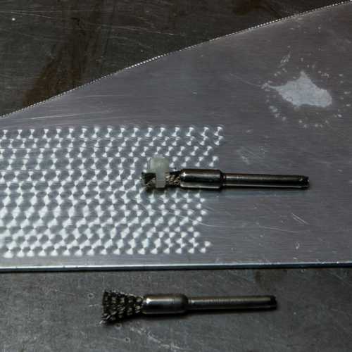 Mise en forme des rivets en ponçant la tête bombée.
