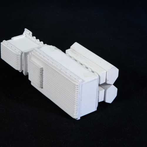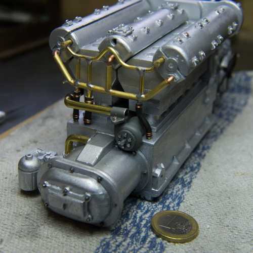 Réalisation du moteur de la Fiat 806.Les différents éléments du moteur sont réalisés en PVC (plaques de différentes épaisseurs), découpés au cutter et collés avec de la colle PVC.