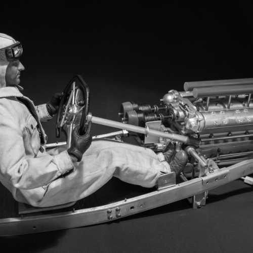 Modification de la calandre avant. Mise en place de la maquette Fiat 806 Grand Prix dans sa vitrine. Le fond de la vitrine est un miroir afin de permettre de mieux voir la carrosserie.