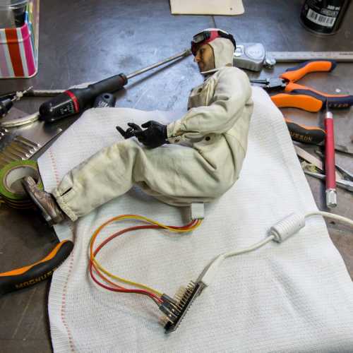 Réalisation de la cagoule du pilote et de ses lunettes.