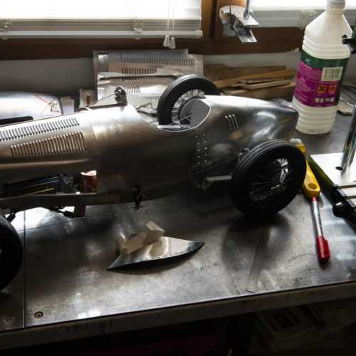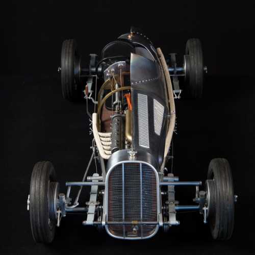 Les matériaux utilisés: aluminium, acier (châssis et les trains avant / arrière), fibre de verre, aluminium (carrosserie), carte plastique PVC (moteur), laiton, cuivre...
