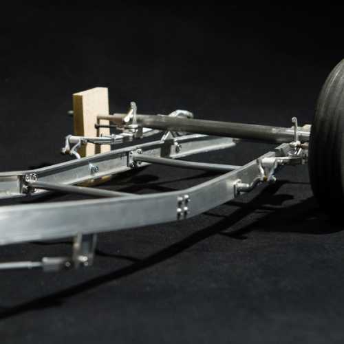 Fabrication des haubans de suspension avant, des 2 bocaux de remplissage moteur, du cardan de la transmission et de la tringlerie du levier de changement de vitesse.