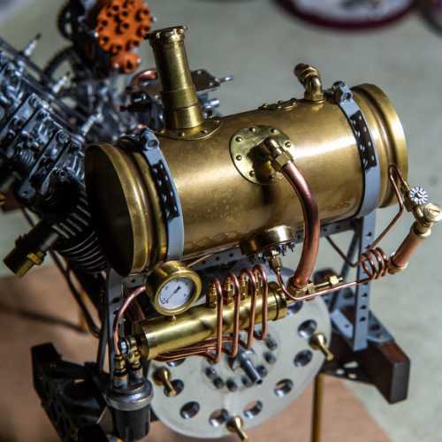 J'avais prévu de réaliser la maquette de cette voiture, mais Richard n'avait plus suffisamment de temps à me consacrer pour que je continue la réalisation de la maquette de façon la plus précise possible. J'ai préféré mettre en valeur ce magnifique moteur avec son embrayage et son réservoir d'huile. C'est une autre façon de présenter et de rendre hommage à sa voiture et à son travail.