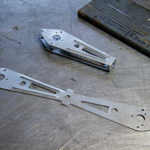 Une partie du train arrière. Comme dans la réalité, la tôle est emboutie afin de créer des nervures qui renforcent la solidité du bras..