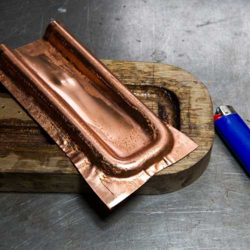 Je n'avais qu'une plaque cuivre en 5/10 et même en la recuisant plusieurs fois pour la rendre malléable ça n'a pas était facile du tout. C'était certainement mieux en 3/10 mais il fallait passer une commande juste pour ça et le prix du transport coûte plus cher que la plaque :o((