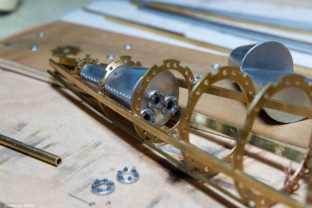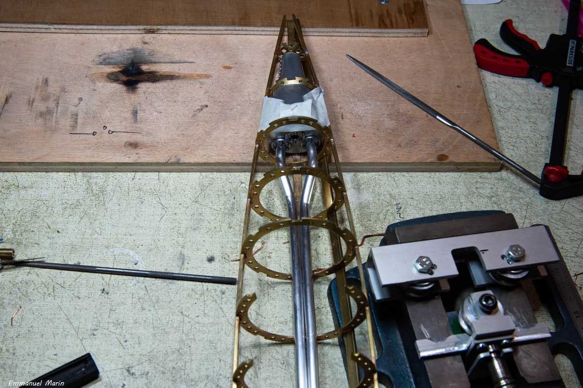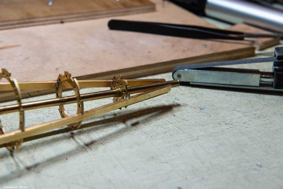 Stucture du sous-marin en laiton. Mise en place du tube d'étambot.