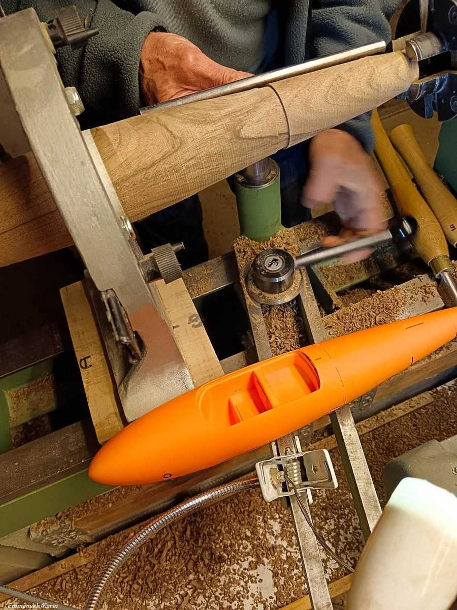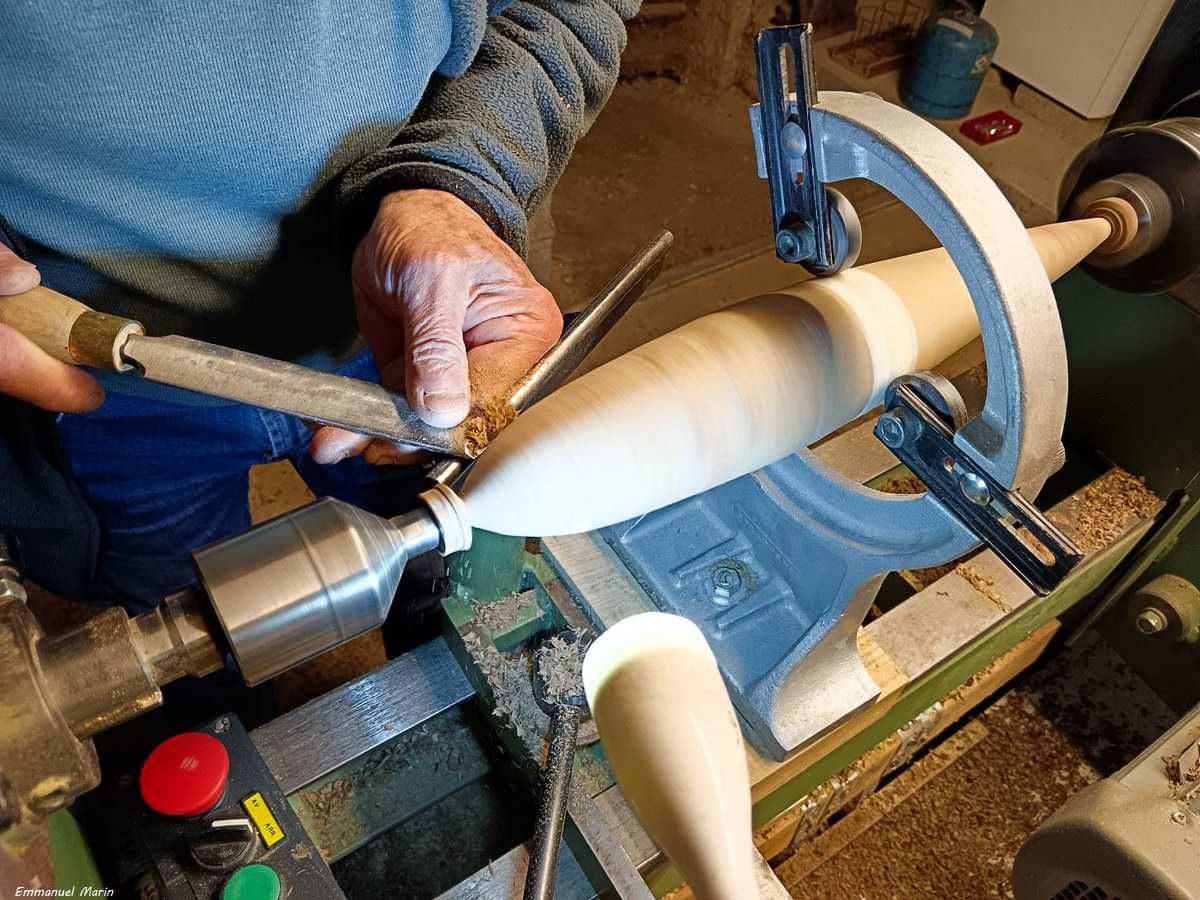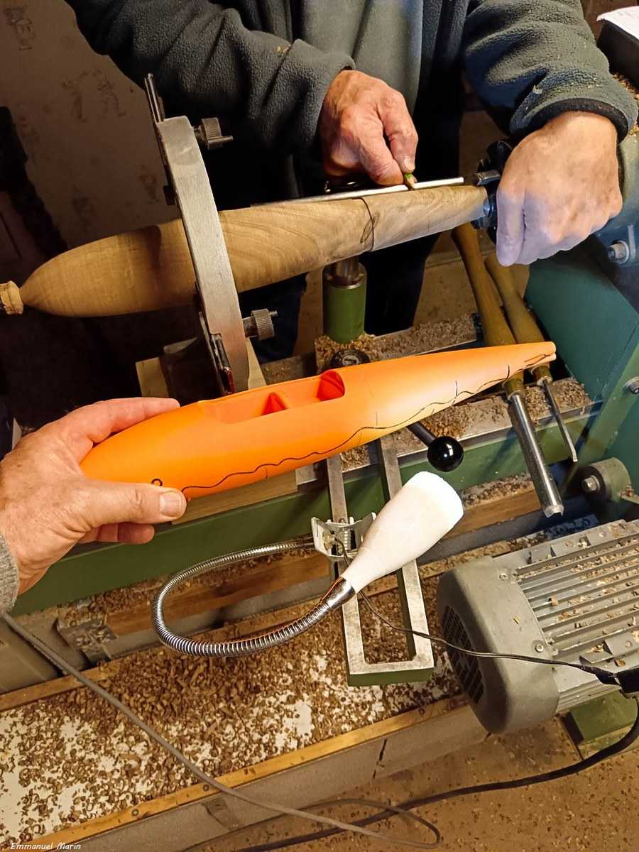 Réalisation au tour du master en bois pour le formage des tôles. Merci Daniel ;o)